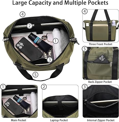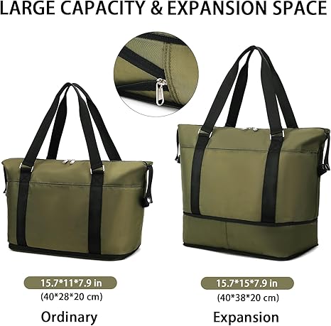 Waterproof Weekender Bag Carry On Tote Bags for Women, Travel Essentials Sport Gym Bag for Men(Dark Green)