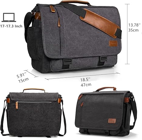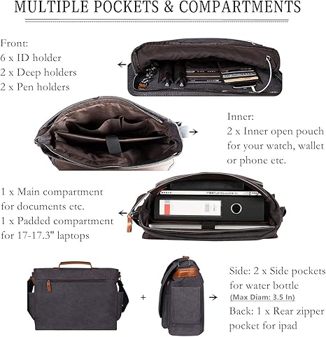 Canvas Laptop Shoulder Bag Multiple Organizer Pockets